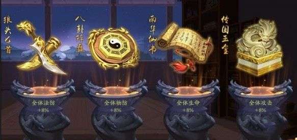 时空外传的增益,随着敌人的强弱来提升。前面的敌军实力较低,击败后给予的帐篷是紫符,所以我们选济弱,后面橙符选承天之祐和震慑八方(降低敌方攻击),最后两个则优选生死羁绊,其次选择变猪也不错。
