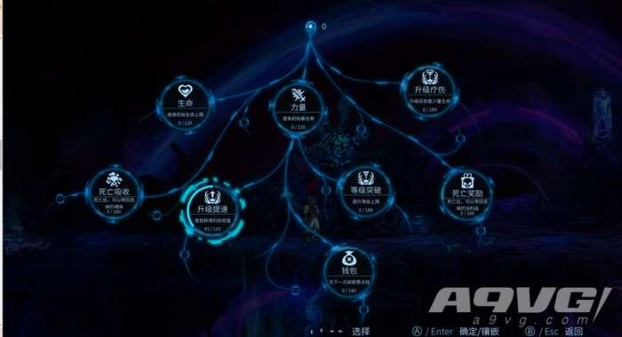 与此同时,游戏在死亡后将回到迷宫的起点,并且等级、天赋也将重置,但玩家能够在冒险之外,解锁更多的冒险道具,以及属性天赋树的提升。在不断死亡与复活之间,玩家的能力将会不断变强,这既体现在玩家的操作习惯上,更是由角色属性的成长来推动游戏的流程。其实这套玩法更常见于Roguelite卡牌游戏中,而在于动作游戏相结合之后,游戏呈现出了的另类快感却依旧让人感觉欲罢不能。