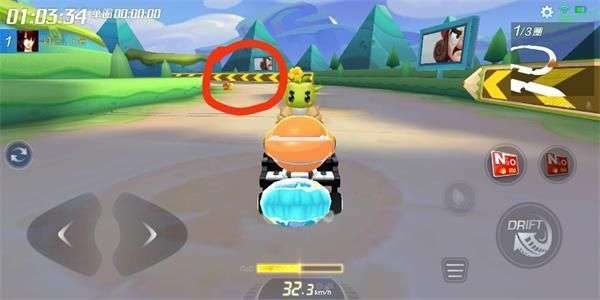 宝箱详细地点:位于旋转木马地图赛道的终点前弯道内侧左边,具体如下图所示。