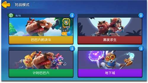 点击屏幕下方的【巴巴六决斗】可以选择其他的对战模式,另外还有:黑夜求生、计时巴巴六、地下城。