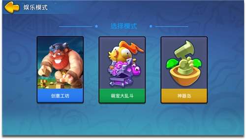 点击屏幕右侧的【娱乐】板块可选择娱乐的游戏模式:创意工坊、萌宠大乱斗及神器岛。