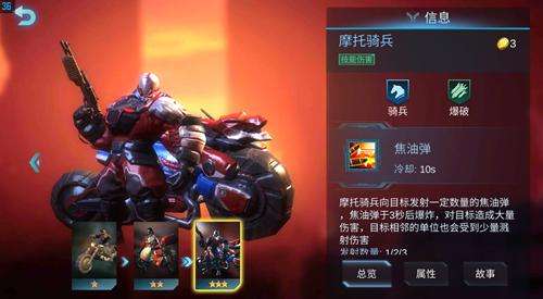 改版后的摩托骑兵个人感觉在前期效果平平,但在2星以后的表现却相当突出,经常一局战斗能够放出来两到三次大招,伤害非常可观!但由于不适合主流环境,所以不推荐三星,前期弄个两星过渡即可~