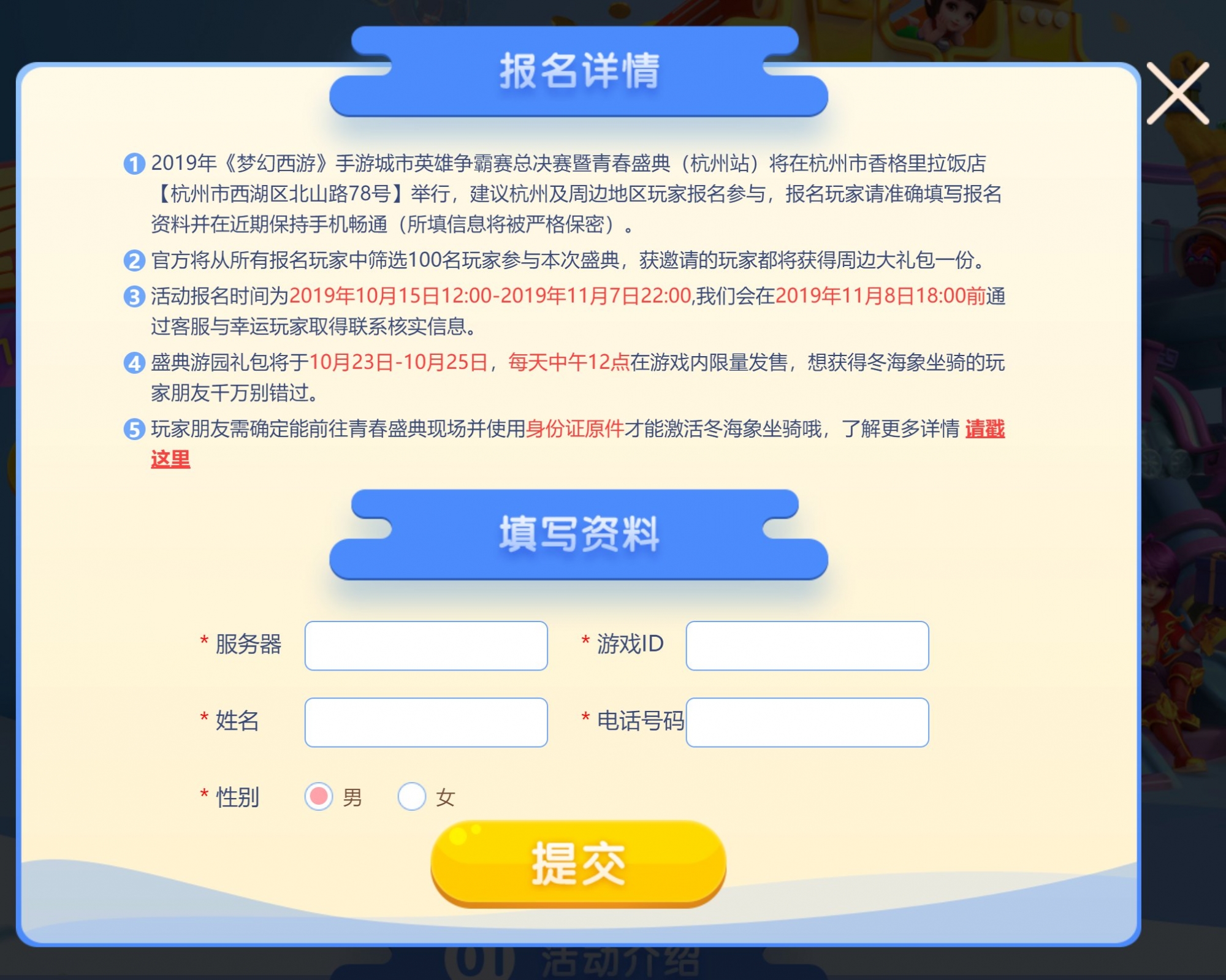 玩家可以在11月7日前前往活动主页,点击“玩家报名”,或是在城市英雄争霸赛活动主页,点击“观赛报名”,留下自己的联系方式,赢取亲临现场的机会。