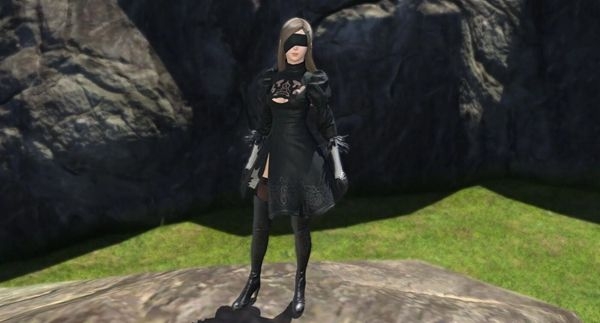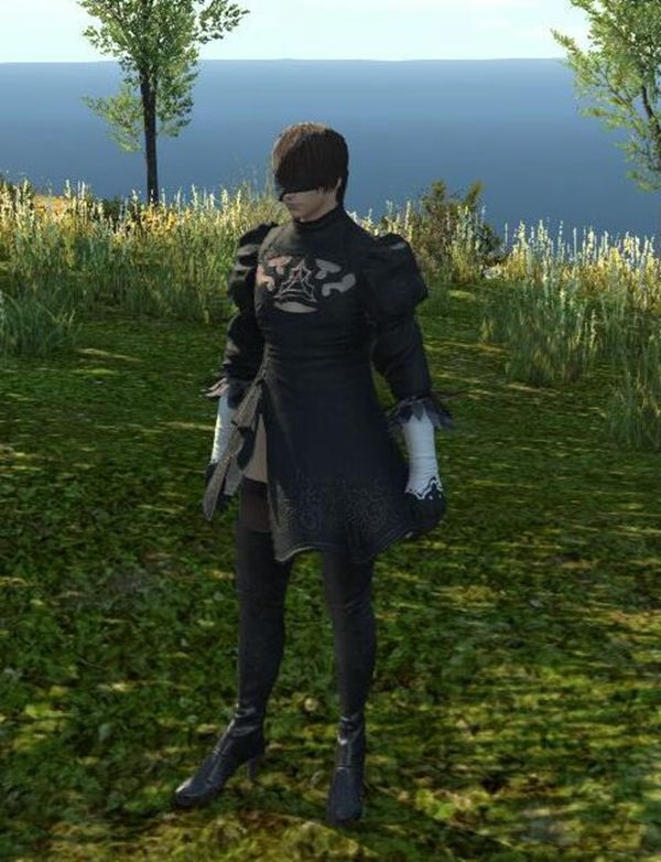 值得一提的是,虽然在《尼尔:机械纪元》游戏原作中,2B是一名女性机器人,但她的时装在《最终幻想14》的世界里并没有性别穿戴要求,让男性角色穿上的话外型令人感觉有些忍俊不禁。