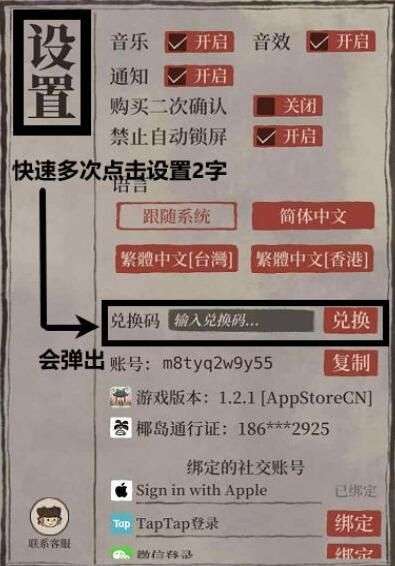 4、进入游戏之后,我们点击右下角的【...】-【设置】,进入设置界面后,快速多次点击左上角最大的【设置】二字,便会弹出兑换码界面。再输入你所有的福利兑换码即可生效!