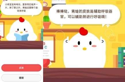今天的问题是:小鸡宝宝考考你,夏季雨后蛙声一片,除了肺之外,青蛙还靠哪个器官来呼吸?