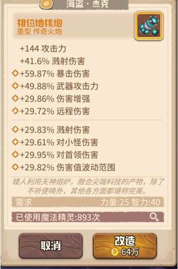 炮,尤其是地核炮是游戏里最难打造的不管是逆天的特效范围还是词条,一般武器都是次要1个专属有用,炮类是2个-溅射,伤害波动,这样就导致出来炮的8个词条基本固定没的变动。