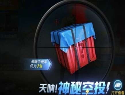 如图所示,这位玩家就在游戏大厅页面里收到了1份“神秘空投”,上面还写着“被砸中概率仅为1%”,可见有多么罕见了~接下来,我们打开这个神秘空投,看看里面究竟藏着什么?