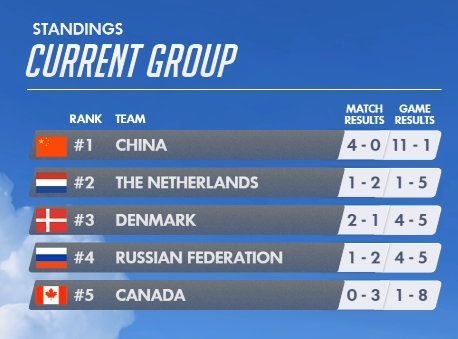 今天的中国队状态可谓是非常火热,第一场对战丹麦队3:0迅速拿下,第二场对战荷兰队稍微遇到了一点阻碍,但仍以2:1的比分取胜。打出信心的中国队以3:0的比分横扫俄罗斯队,并用一场3:0击败加拿大拿到全胜。