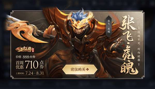 “战魂不灭,所向披靡!”五虎上将系列皮肤——张飞-虎魄将于7月24日零点上架!