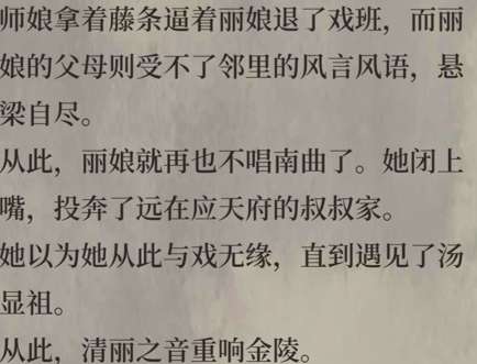 《江南百景图》的叙事,延续了这样的一种风格,并且很会把握这种细节化碎片化叙事的尺度:过于家长里短,则庸俗;过于大开大合,则无脑;过于细水长流,则无趣……《江南百景图》在叙事时,不论是游戏中随机触发的谈话,还是角色的背景故事,均使用了传奇小说式的写法,由细微处着笔,向奇诡处转锋,结尾留白或反转,使人意犹未尽。