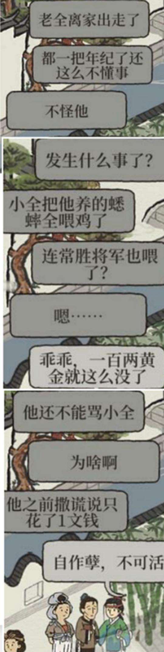 另外有玩家在社交媒体上分享到,使用善于中饱私囊的反派角色建设城镇时,玩家将无需付费,但是随着游戏的发展,民居里会出现有居民由于该反派角色克扣工资而死的随机剧情。虽然笔者并没有触发该随机剧情,但是这类精巧的剧情设计在《江南百景图》中并不少见,比如普通居民之间的感情互动,特殊角色之间的历史羁绊,都隐藏在文本之中,供人在探索时偶然发现,获得一些惊喜。