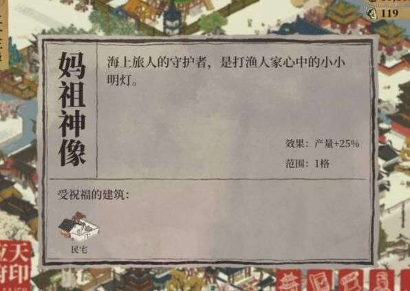 该神像可以放置在居民区域中,来提升租金收益。由于加成范围比较小,因此在布局上需要玩家们多花些心思。