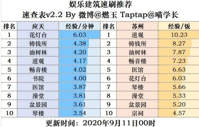 应天:花灯台>铸钱所(39级)>油树林(33级)>道观(28级)>畅音楼(46级)>书院(按每个建筑的每分钟经验速度排序)