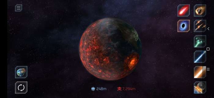 可用用各种办法毁灭一个星球,让玩家们自己来选择,超多不同的星球可以模拟,而且也有完全不同的模型展现,玩家可以非常直观的看到各种自然灾害对星球的伤害。