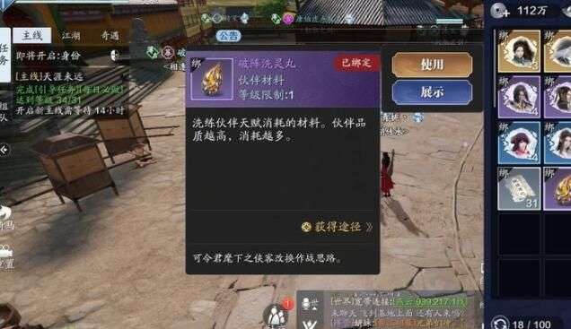 伙伴解锁后默认等级为1级,我们需要使用“侠影研习录”来提升伙伴等级,伙伴升级后可提升功力、属性并解锁主动技能。但伙伴升级并不是无限制的,极品伙伴等级不可超过玩家角色等级,绝品伙伴可超过玩家5级,神品伙伴可超过玩家10级。