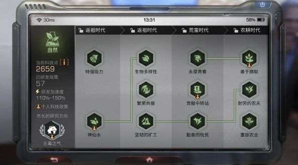 科技:同时搭配好相关自然科技,也可以让种植效率最大化,营地科技如生物多样性、永葆青春、耐劳的农夫等,个人科技如神秘庭院、神仙水都可以增加农收效率。