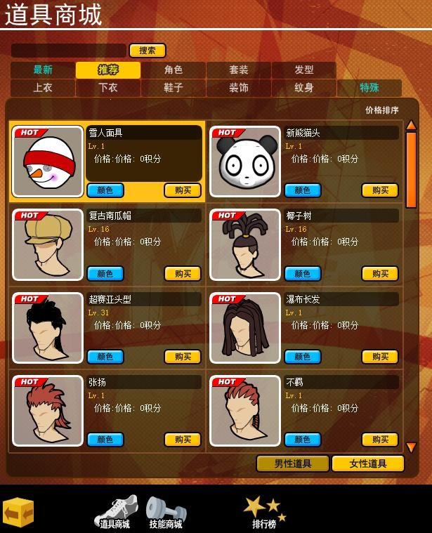 2013频道中的商城中的道具均为0点券,0积分,玩家可以免费进行购买。