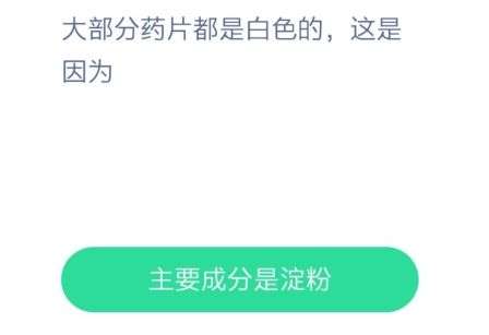 答案解析: 一般药片的有效成分只有几毫克,剩余的都是辅料,而辅料多数都是淀粉,所以药片大部分是白色的。淀粉可以将有效成分粘合在一起,这才将药粉变成药片。