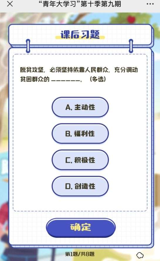 青年大学习第10季第9期8道课后习题作业答案: