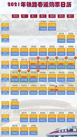 2021年春运火车票预售日期时间表