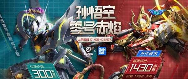 孙悟空万代联名款限定皮肤【零号·赤焰】及其星传说皮肤【零号·雷霆】即将同步降临战场