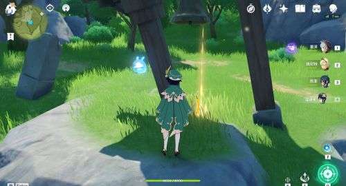 2、玩家们在到达位置后,装备背包中的寻宝仙灵,找到一口钟,如下图所示位置。