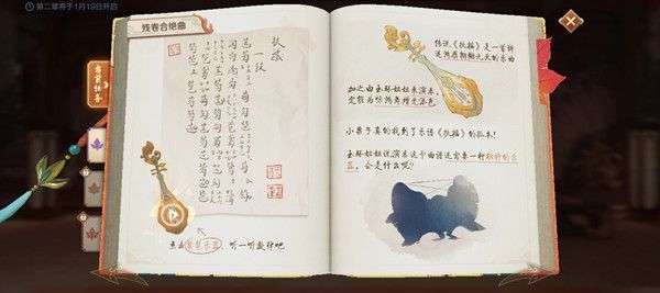 集齐残页之后不仅可以完成任务领取奖励,而且可以点击琵琶乐器试听旋律哦~