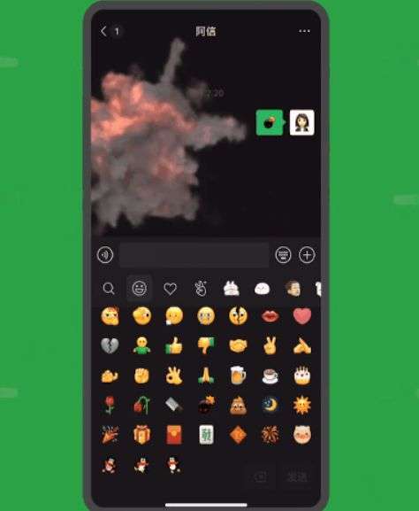 快看看你的微信表情变了吗?当用户在聊天中发送或者接收单个小表情,会播放动画效果。部分小表情动画效果可全屏播放一些一异想天开的想法变成了现实,比如和好友互仍炸弹,放满屏的烟花,发庆祝的礼花。新增了自带表情包中特殊表情的全屏动画,比如“庆祝”会满屏放烟花。黄脸表情会动了,默认发出会比之前的大,且会展示动画。