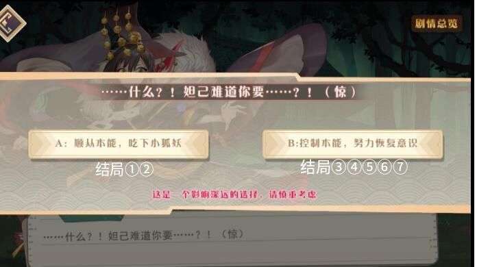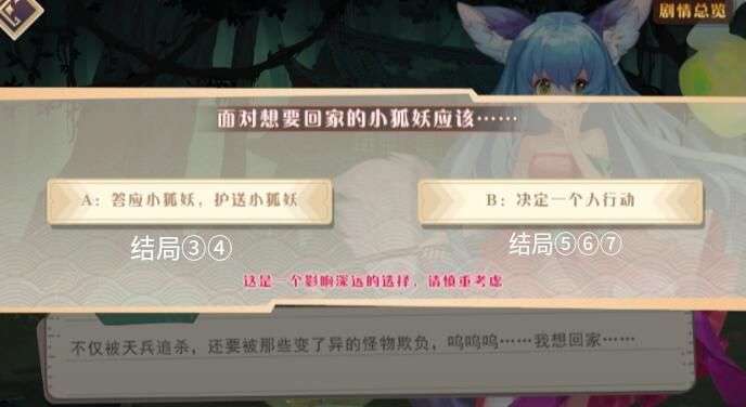 结局4,控制本能,护送小狐妖,一路打怪,遇Boss,赢,继续打怪,到出现结局
