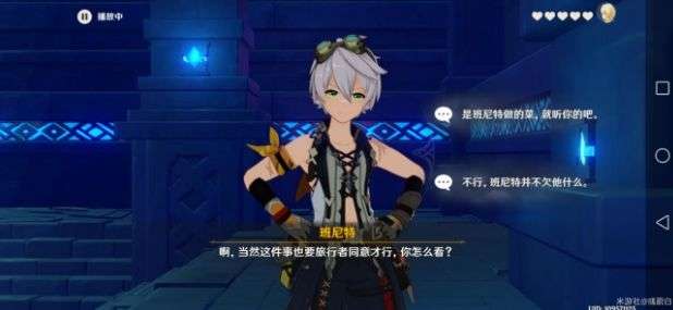 然后进入秘境后会遇到班尼冒险团的前成员,经过对班尼特的一顿吐槽之后会出现图中两个选项,选择上方选项会达成支线三的结局,相反将达成支线四的结局。