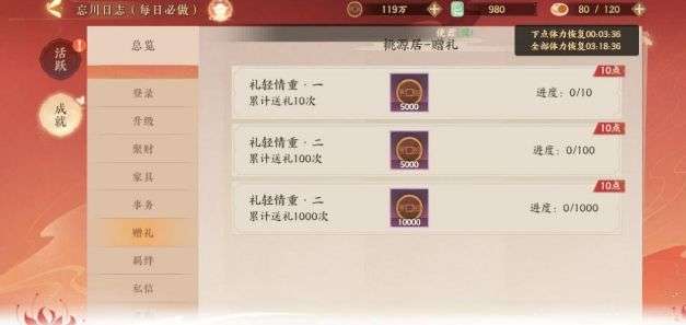 铜币:桃源木数目累积、送礼次数、名士印象数目。