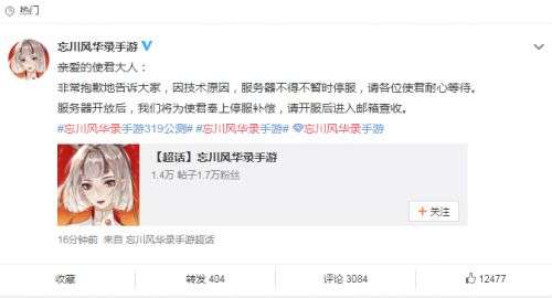 3月19日上午10:00本是忘川风华录原定公测的时间。正当网友们蓄势待发的准时进入游戏时,却发现游戏因服务器问题延迟开服一个小时。