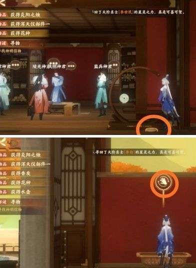 棋谱部分,与李淳风对话,寻找苍龙棋谱,向左走查看一下类似青花瓷的罐子。