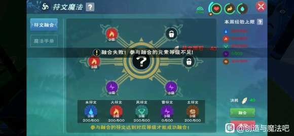 7个四级魔法,用排列组合试了70次,出现这个提示说明配方正确。另外新的二级魔法是风火雷土(符文灵箭)应该没有遗漏了。
