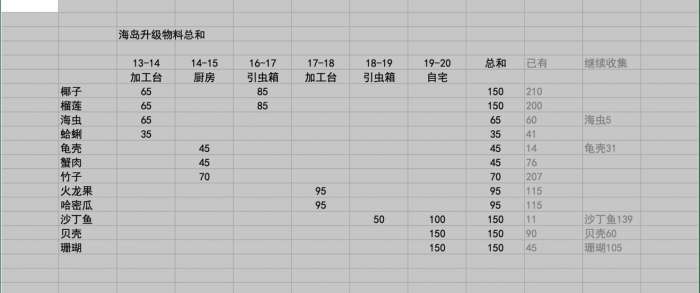 蓝色树木只选择水拓雪松,绿色采集物萌新适当采,大佬自己去外面找。这样收益大一点。珊瑚贝壳洞洞不放过进岛先绕沙滩搜一圈。海岛独有水果适当采够用就行,不要贪吃。