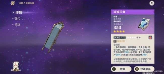 高精乐章虽然白值低了点,但优秀的被动让它不比五星武器差,前提是速切,副词条爆伤,一直是核爆流的选择,可惜它只适合速切,