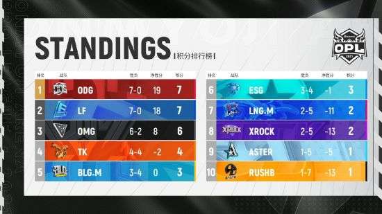 ODG与LF持续领跑,OMG状态回归拿下二连胜