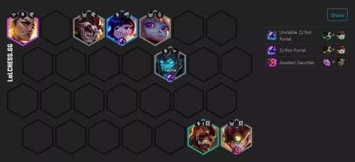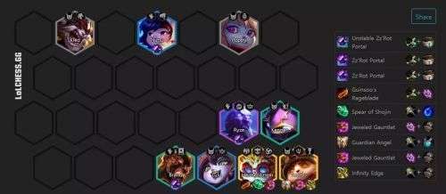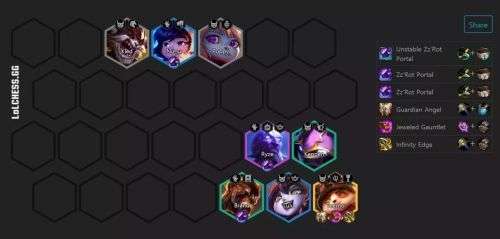 丧失羁绊的关键就是传送门,最佳的搭配是2白1黑,黑传送门虽然可以带来爆破的效果,但是在后期白传送门才是阵容坦度的关键。后期只要环绕着提莫做防护,那么就不缺黑虫子这点损害了