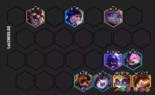 9人口在阵容的基础上补充大头凑损害即可,这样阵容成型就有6只虫子+4个小恶魔当前排,非常非常的肉,后期坦度完全不用担忧。但是这套阵容后期非常胆怯遇到刺客,刺客能够直接切到我方后排,特殊是大头没有复活甲的情况下很容易被带走。