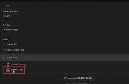 ②在设置页面滑动到最下方,点击【Scavengers】展开下拉框;