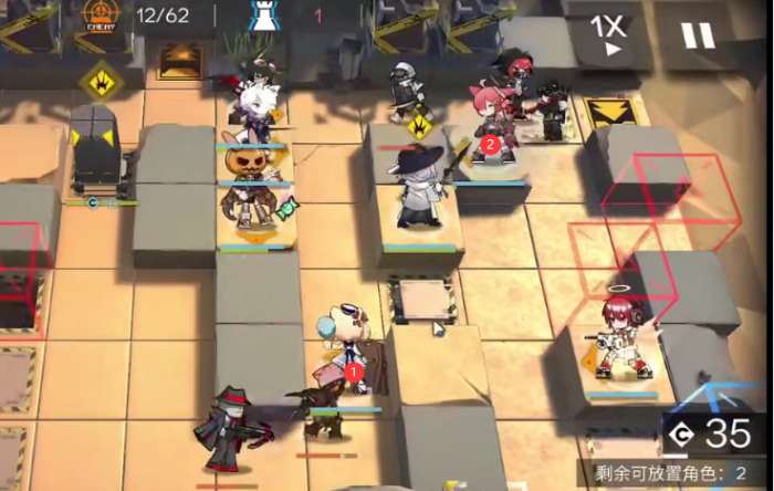 如下图所示摆放干员,先下先锋 → 桃金娘 → 杀回先锋(向上)→ 辅助(向上) → 史尔特尔(向上)→ 单体狙击(如果是灰烬可以早点下暖机)