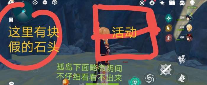 双双岛锚点左下角慢飞有个假石头打开是个洞海螺在里面