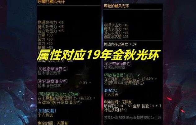 输出光环:+45三攻,lv1-50技能+1;输出光环:+15三攻,+50四维,lv1-50技能+1。