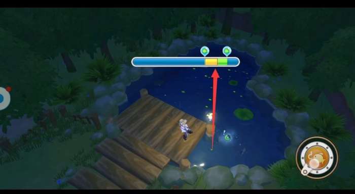 同时,我们要按住,右下角的小鱼图标,将橙色的读条(图3)绿色的框框内,直到它不断增长,才能钓得上来哦!