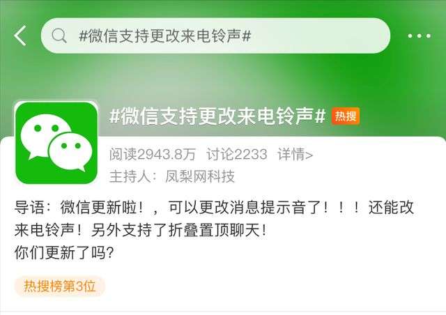 现在,iOS用户更新微信至版本8.0.8,可自定义来电铃声。
