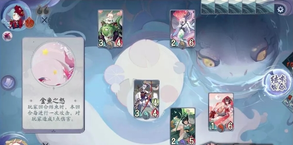 对阵金鱼姬并不困难,但一定要小心谨慎,若阵容中有桃花妖,就可以提升一些容错率,保留几张“桃之馨息”可以让我方牌手保持一个很健康的状态;