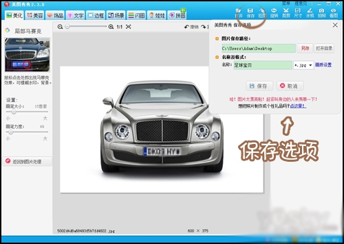 4、打好马赛克后选择保存,在保存选项中选择保存路径和修改保存名称就行了。