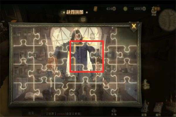 在长袍店,进入到长袍店后,点击桌子上面的金币即可获得第一个拼图。