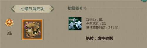 金色通用攻击力秘籍,效果为攻击力、全系抗性、会心抵抗,获取方式为秘籍抽取或者拍卖获得,未获得此秘籍可以使用《玄冰碧火功》等紫色通用攻击力秘籍。